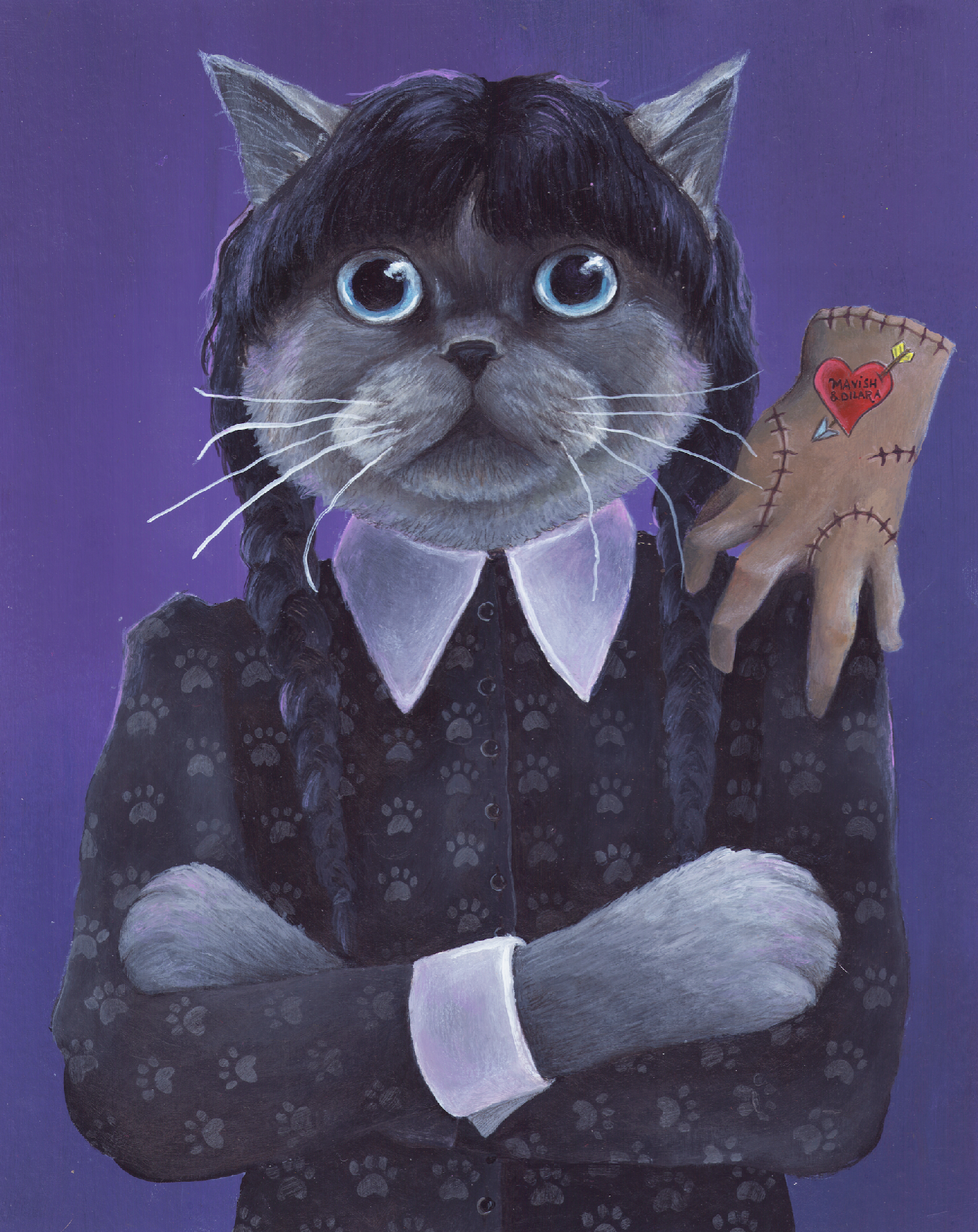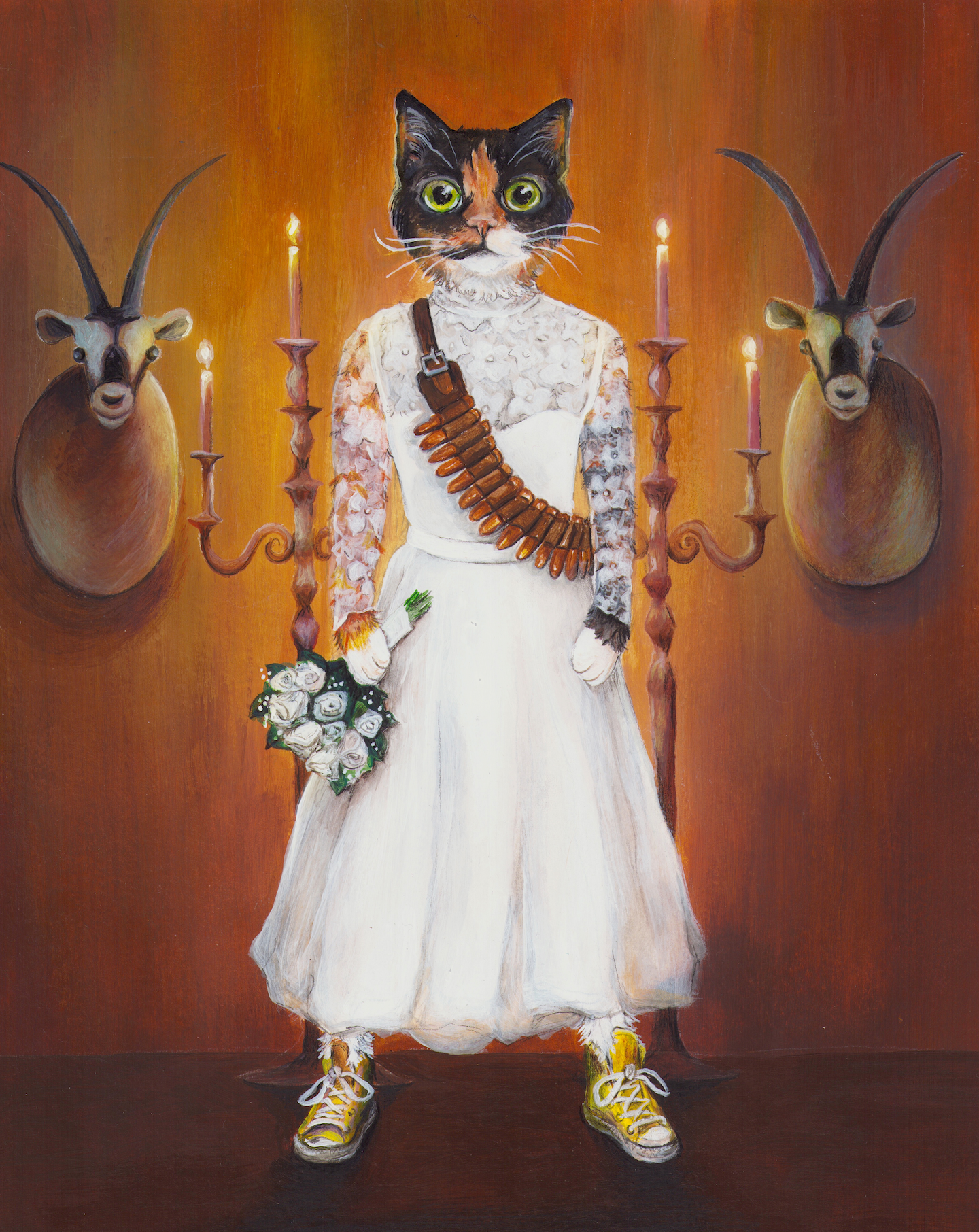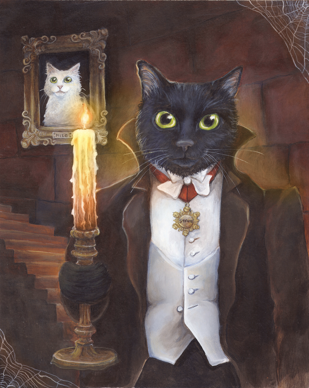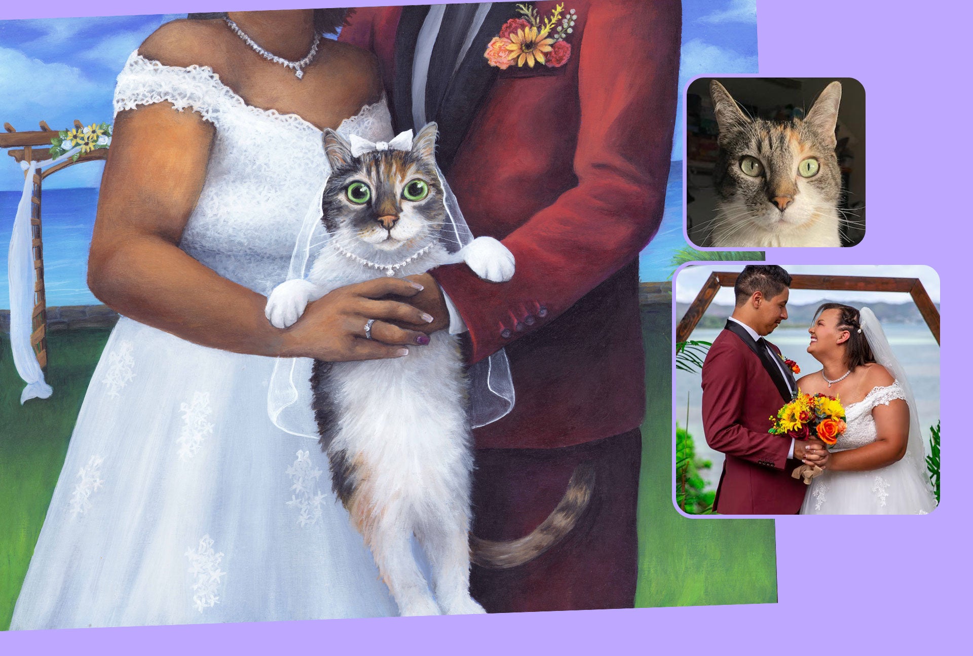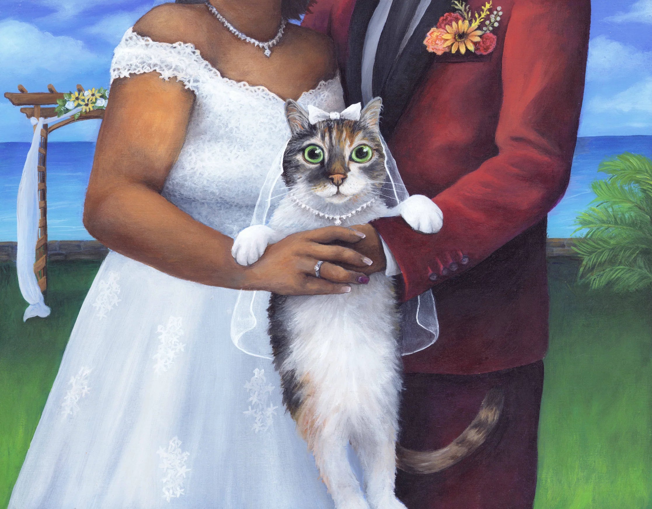 Unable to bring their cat, Baby, to their wedding, these clients commissioned a painting to make her the star of the celebration.