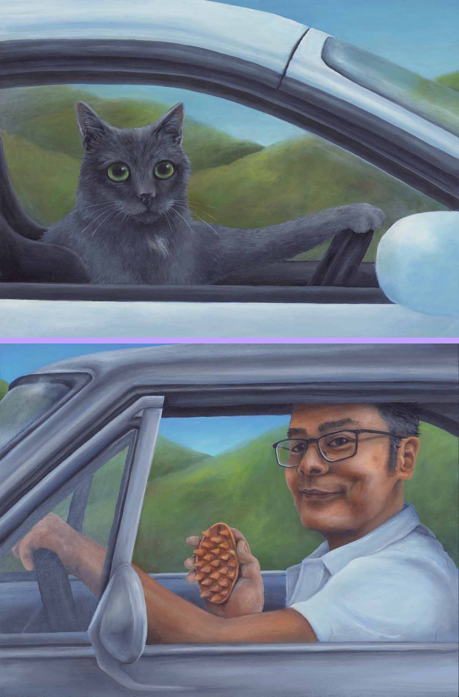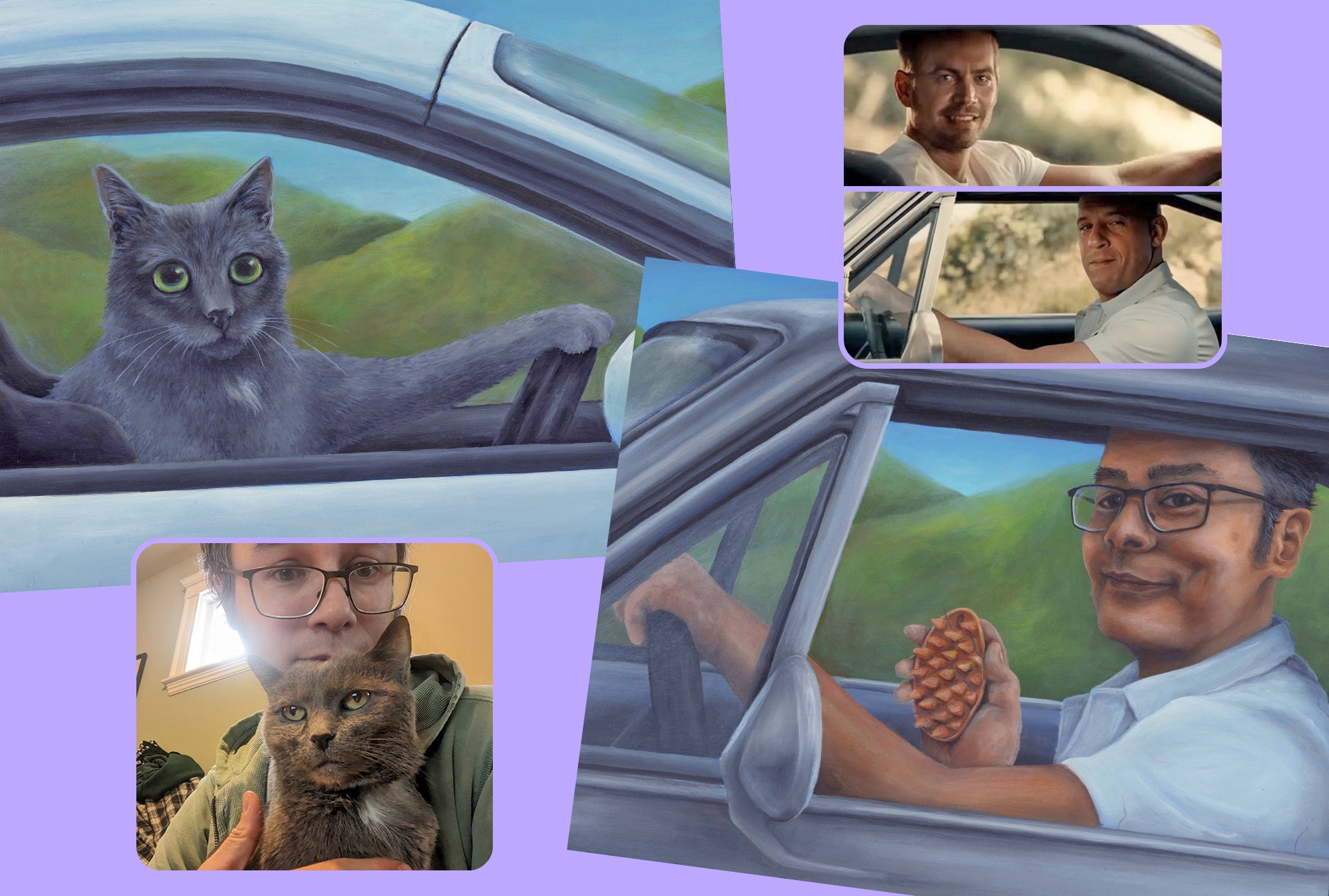 In memory of his late cat, Moose, this client commissioned two paintings inspired by Paul Walker’s final drive scene in Furious 7.