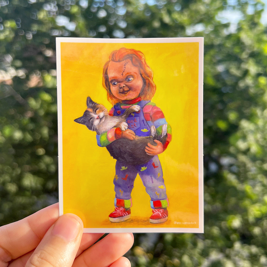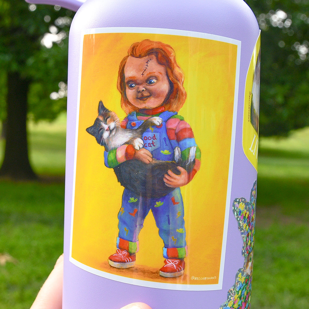 The sticker is of my original hand-painted illustration — made of durable, water-resistant vinyl with a glossy finish. Measures 2 x 4 inches.