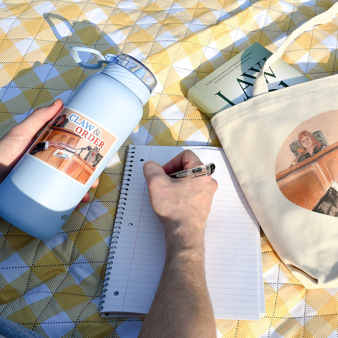This is one of my best-selling illustrations — purchased as gifts for law professionals, students, and graduates. Also available as a tote bag and customizable art print.