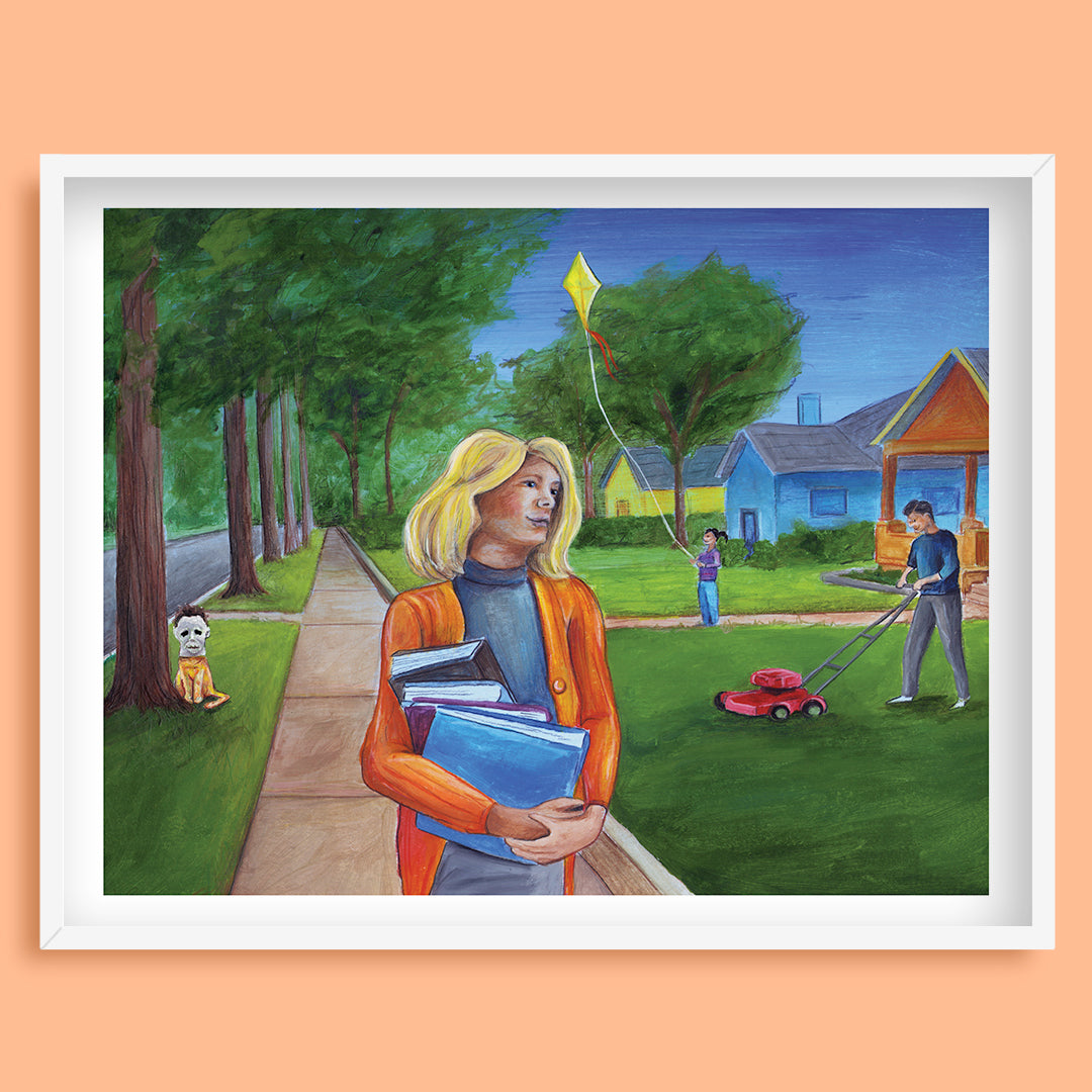 There's nothing more terrifying than Michael Myers... as a cat; the artwork features a beautiful suburban scene with one sinister twist.