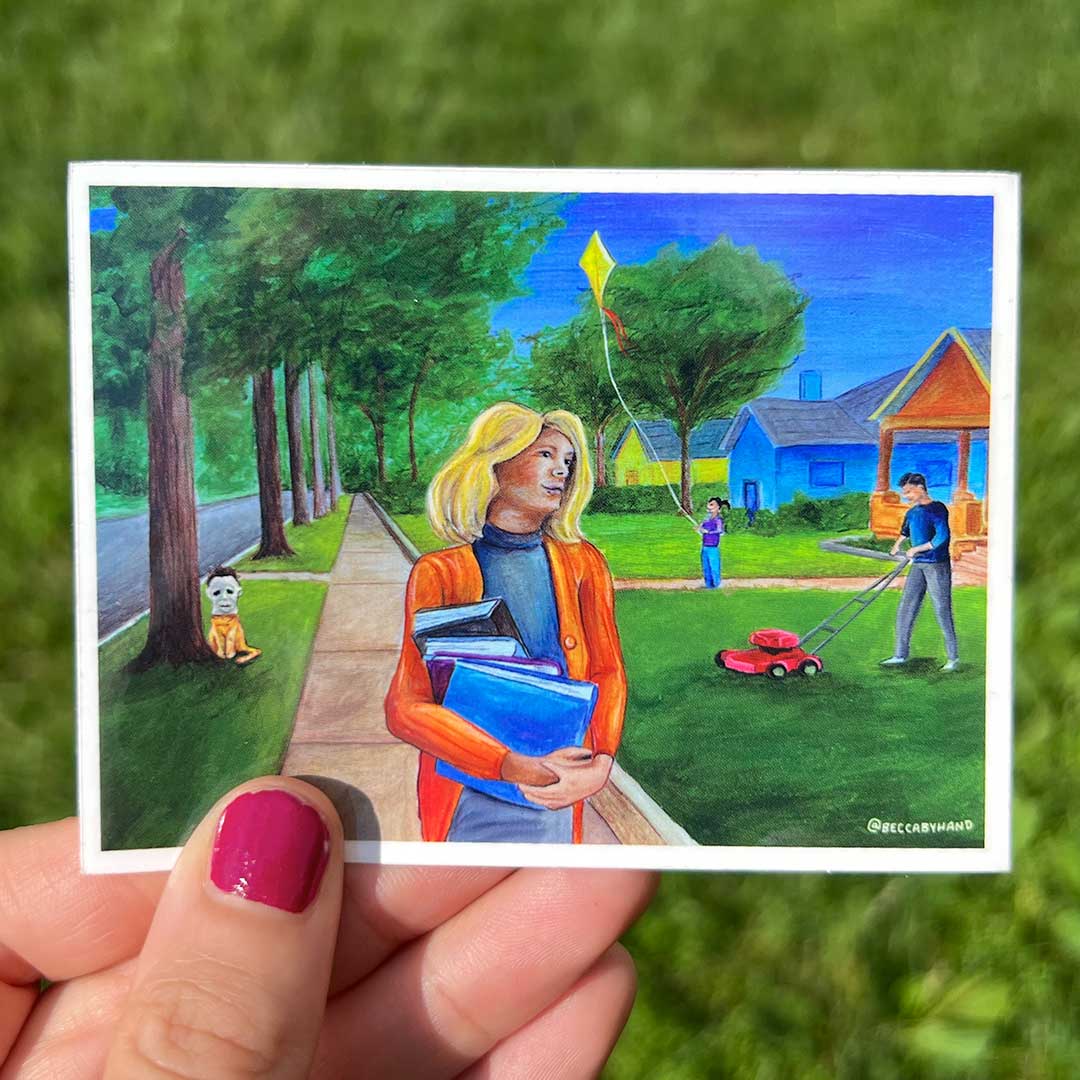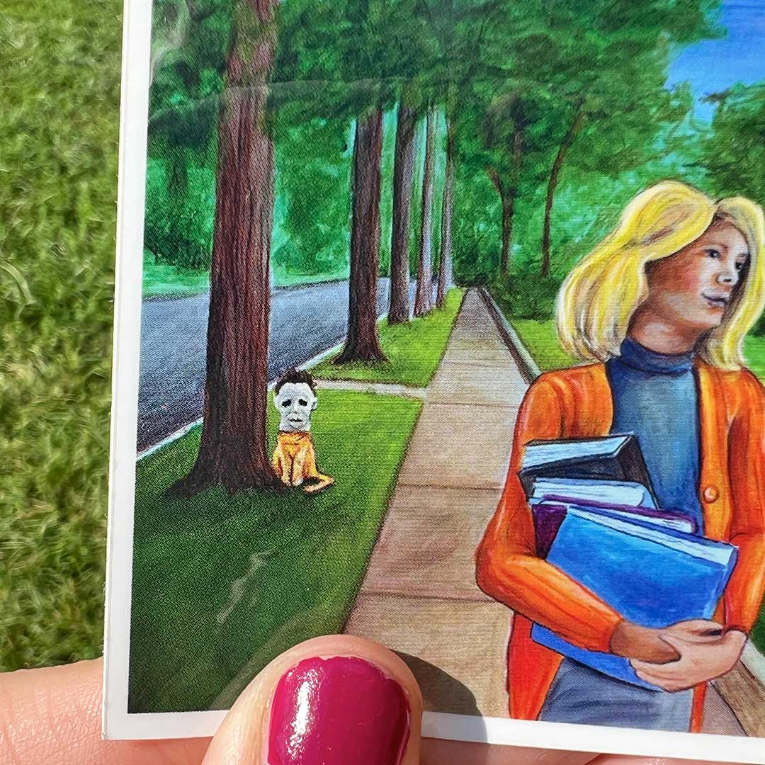 There's nothing more terrifying than Michael Meyers... as a cat. This sticker features a beautiful suburban scene with one sinister twist.