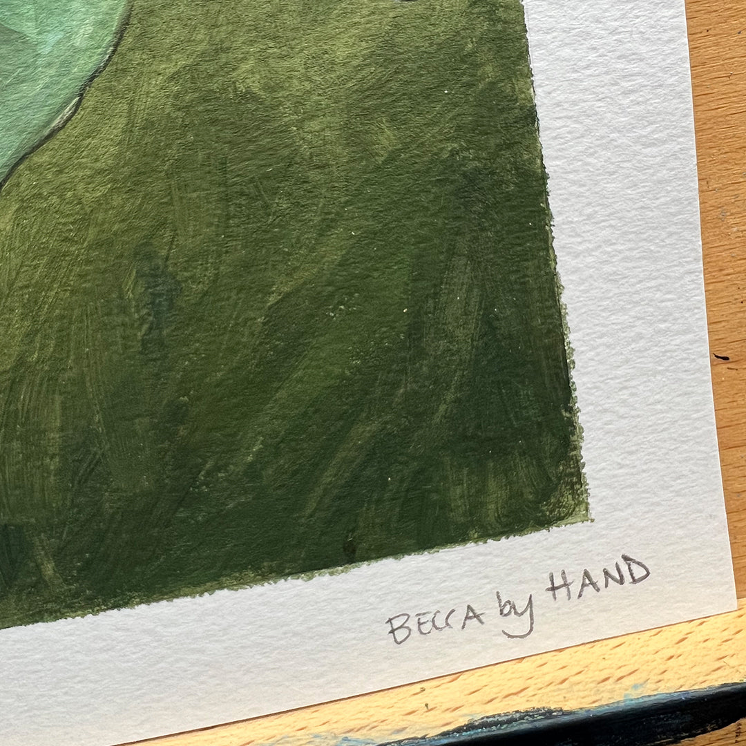 The 11x14" Catbirds original painting. It was painted by me by hand, using acrylic and colored pencils on mixed media paper. A few smudges, sketch marks, and imperfections may be visible but that's a big part of the hand-painted charm.
