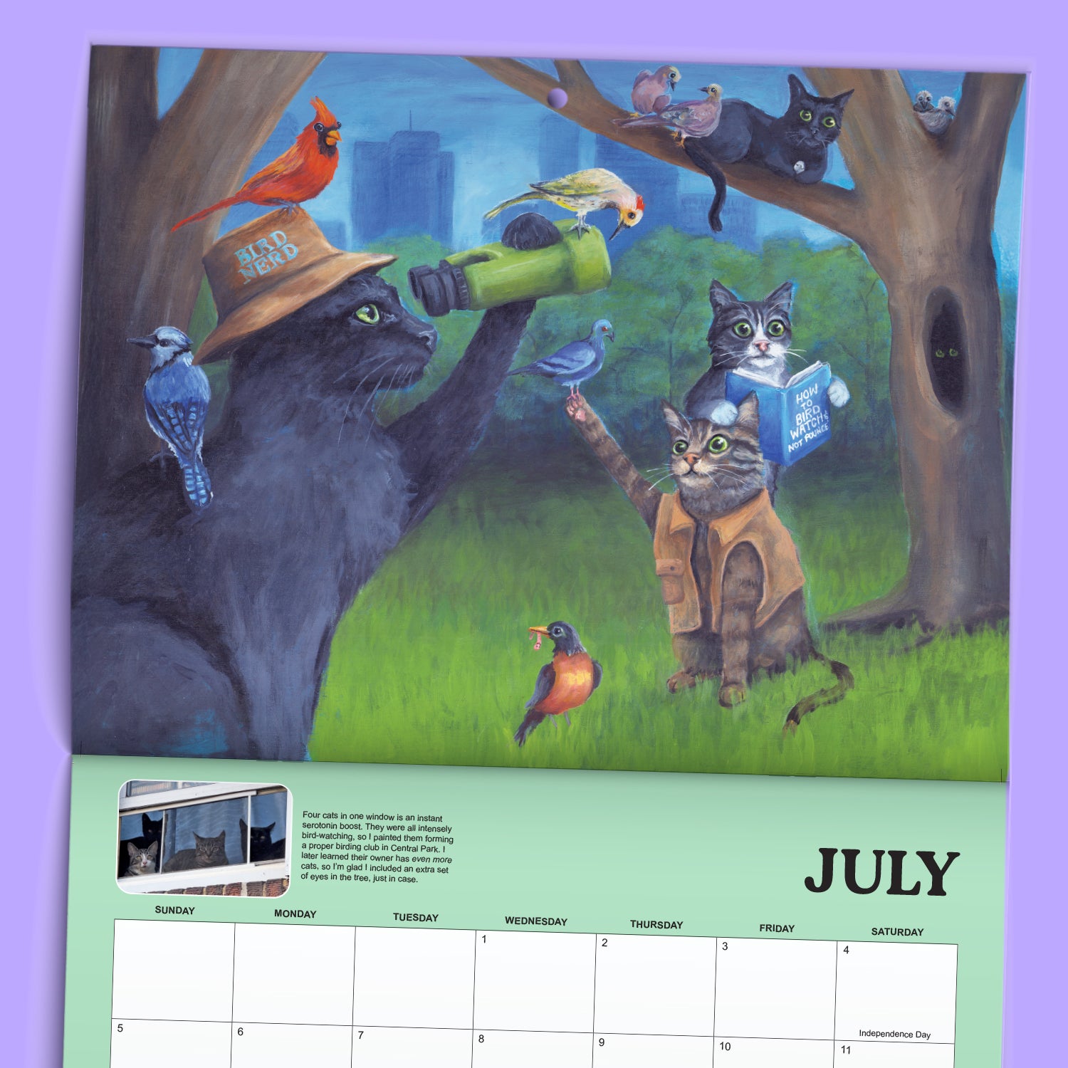 This is a brand-new 12-month calendar available in my shop, featuring 12 original paintings. Each month is inspired by a different cat in a window around Brooklyn.