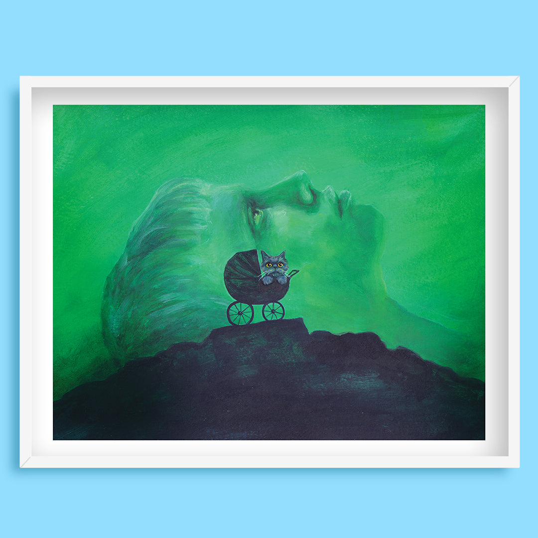 This painting is from my ongoing Scaredy Cats series, available as prints, coloring books, stickers, calendars, and more in my shop!