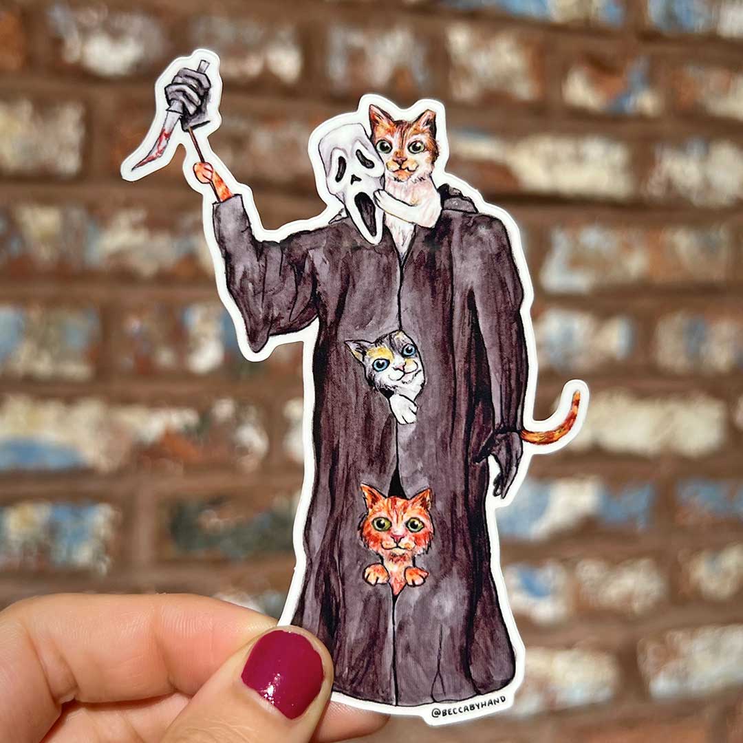 Ghostface's true identity is revealed... as cats! The perfect sticker for horror movie fans.