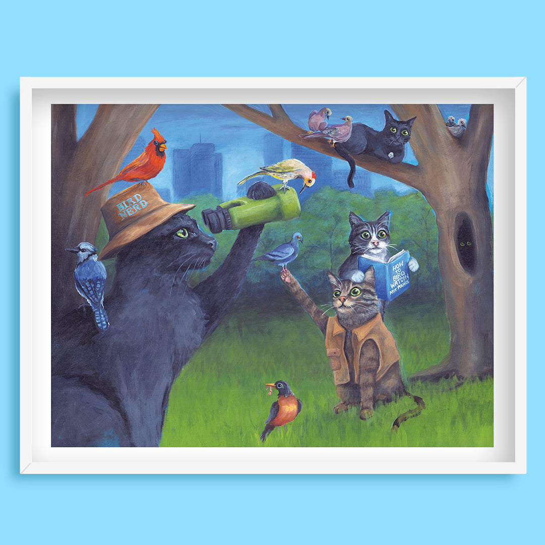 Marvel at the bird-watching mastery of cats, who've started a club to enjoy northeastern flyers like a cardinal, blue jay, robin, mourning dove, pigeon, and woodpecker.
