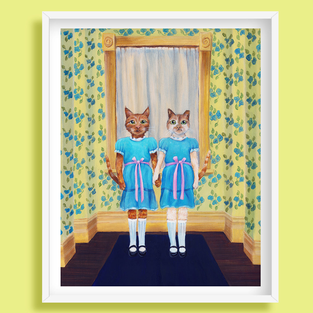 A perfect piece of art for lovers of horror movies and cats, inspired by Stanley Kubrick's The Shining.